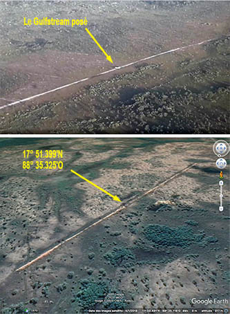 En fait, cette explication plutôt oiseuse sur l’état véritable du terrain où le Gulfstream, à l’endroit où il est s’est posé sans s’enliser, cherchait à dissimuler quelque chose qu’une simple recherche sur Google Earth démontrait facilement.