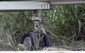 Dans le reportage visible ici, on comprend mieux ce qui s’est passé ce soir-là ; l’aile droite de l’avion a heurté des branches et l’appareil, roue avant tombée dans le bord de ruine herbeux, s’est immobilisé en travers.