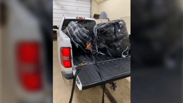 Attachés à Mousseau se trouvaient deux gros paquets de marijuana pesant 265 livres, transformant instantanément sa marchandise en preuve.
