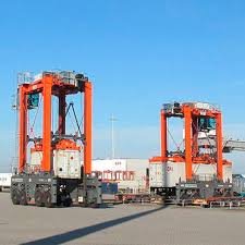 Les conteneurs atterrissent sur le quai où ils sont aussitôt enlevés par des « cavaliers ». Ces véhicules ressemblent à de gros insectes. Ils emportent les conteneurs sous leur ventre. Ils vont les empiler sur une aire de stockage. Ils ramènent ensuite les conteneurs à charger, qui font le chemin inverse vers les cales. Des dizaines de cavaliers se croisent en même temps.