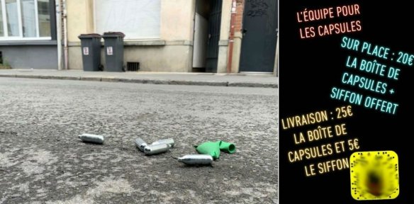 La «drogue du pauvre» s’achète sur Snatchap entre 30 centimes et un euro l’unité et ses capsules après usage finissent par joncher les pavés. | Leïla Khouiel – Capture d’écran Snapchat