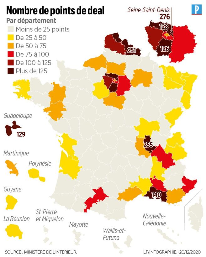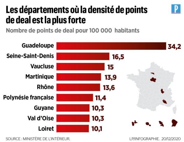 Outre-Mer, la Guadeloupe et la Martinique sont elles aussi gangrenées, avec respectivement 129 et 50 points deal pour à peine plus de 350 000 habitants.