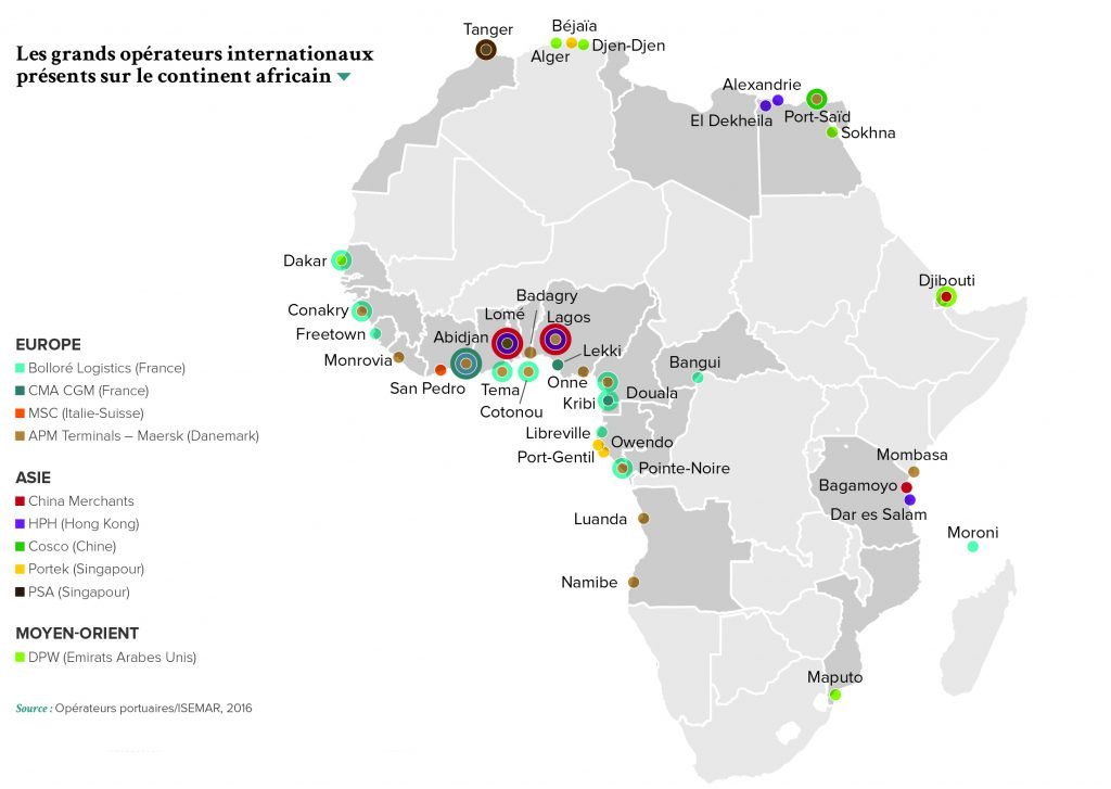 La décennie qui s’achève a suscité l’appétit des grands opérateurs portuaires internationaux, tous désormais présents en Afrique. Les trois grands armateurs européens MSC (TIL), Maersk (APM terminals) et CMA CGM (CMA terminals) sont bien implantés, associés ou concurrents du leader Bolloré. Mais le singapourien Arise, le philippin ICTSI, l’émirati DP World, le chinois China Merchants ont obtenu aussi de beaux succès.