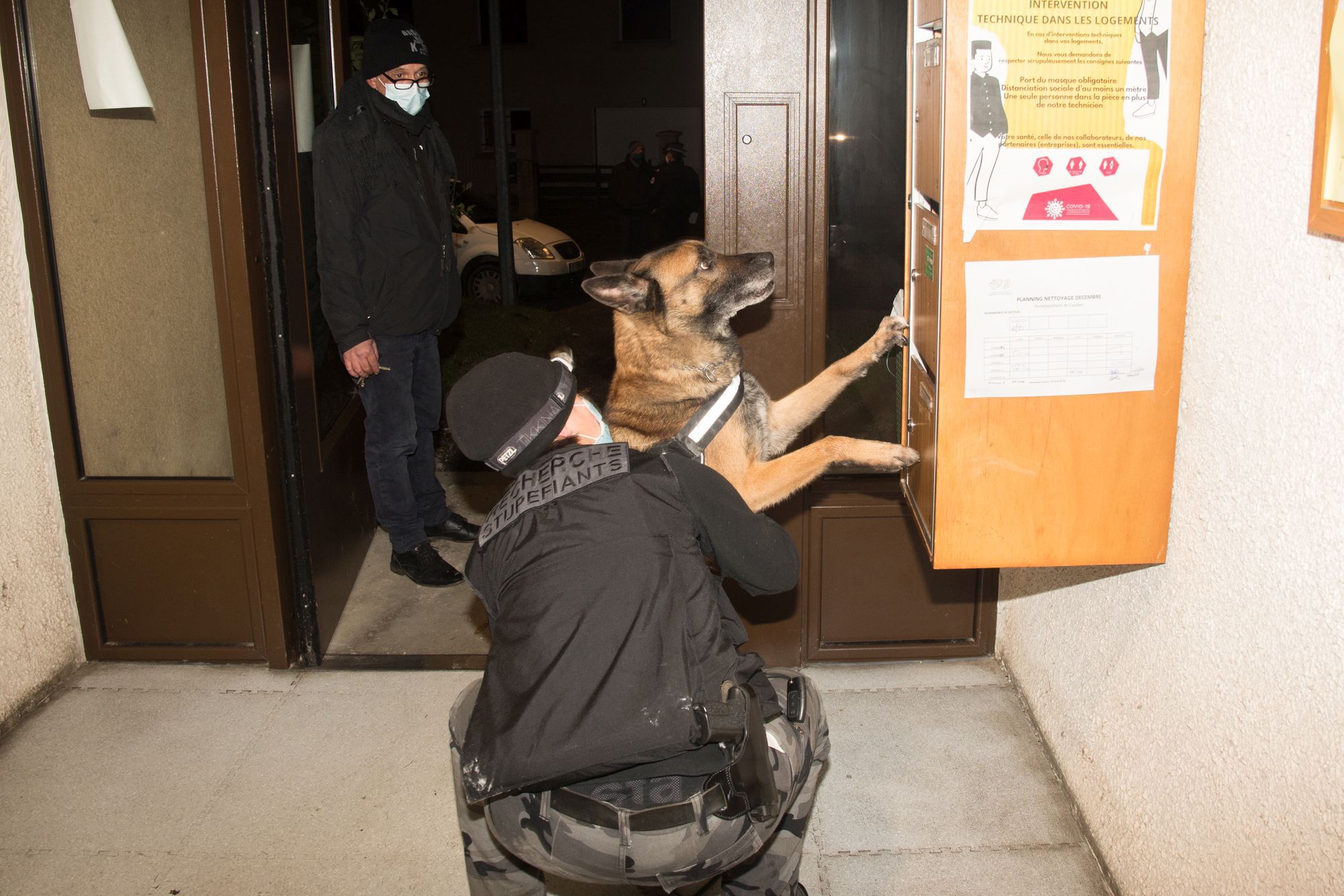 Les policiers se sont donc déployés en nombre, mercredi soir, fouillant caves et cages d’escalier, aidés notamment le chien spécialisé, Idax, un malinois de 8 ans, au flair quasi infaillible.