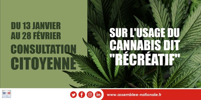 Plus de 130 000 participants en 72 heures. La consultation citoyenne sur le cannabis récréatif lancée par l’Assemblée nationale, mercredi 13 janvier, a démarré en trombe. Alors que les consultations mises en ligne par le Parlement recueillent en moyenne 30 000 réponses, celle sur le cannabis est bien partie pour battre des records. Le signe, selon ses initiateurs, d’une appétence de la population à débattre d’un sujet de société longtemps ignoré par la classe politique, mais bel et bien présent dans le quotidien des Français.