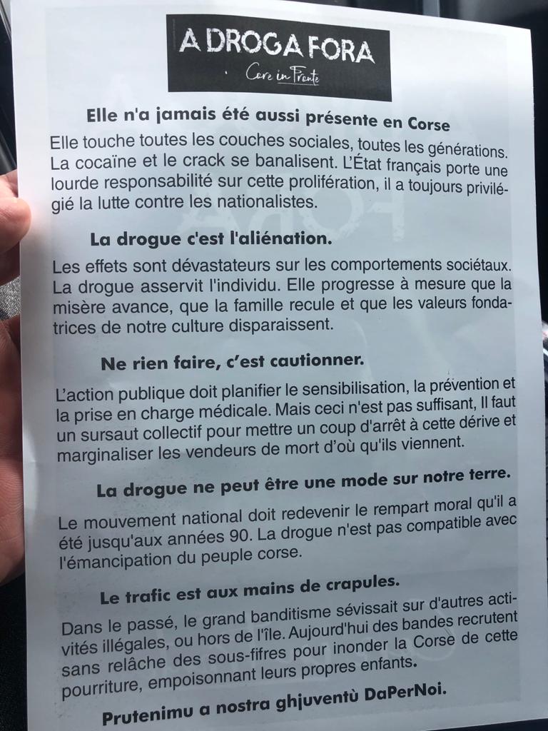 CORSE 🇫🇷 : ce tract a été distribué cette semaine dans les rues d’Ajaccio et de Bastia