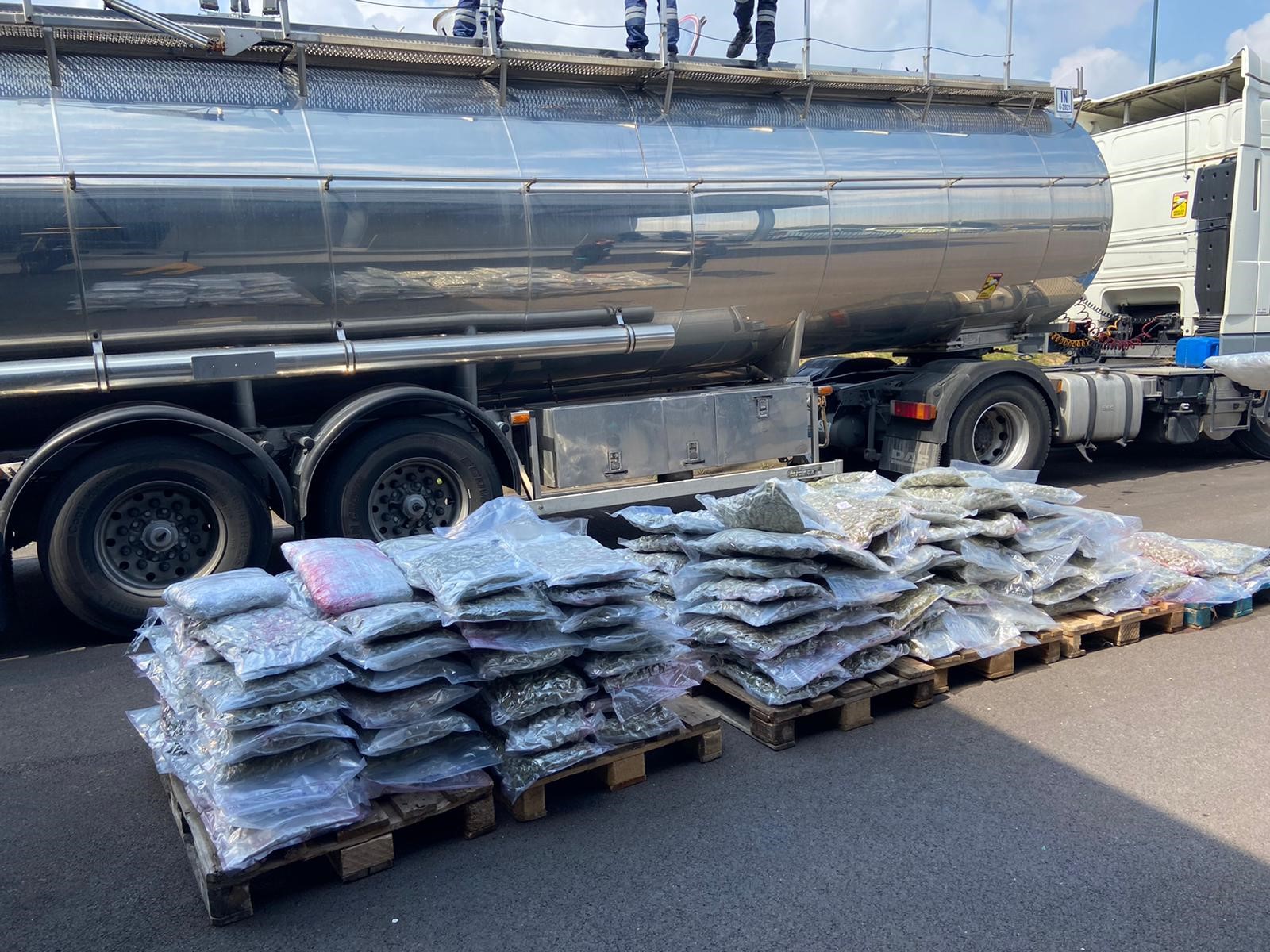 180kg d’herbe de cannabis étaient cachés dans la citerne; le chauffeur a reconnu avoir transporté les produits en connaissance de cause et a été présenté au magistrat du parquet puis écroué.