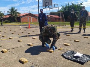 “Una vez realizados los trabajos de rastrillaje nuestros efectivos de la Fuerza Especial de Lucha Contra el Narcotráfico (FELCN) constataron una pista clandestina, en la cabecera de la pista se encontraron 10 bolsas con 30 paquetes tipo ladrillo de cocaína”, dijo.