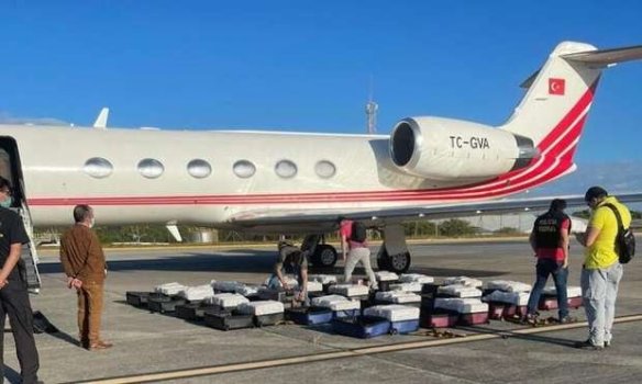 Saisie de plus d’une tonne de cocaïne (1.304 kilos) dans un jet privé arborant un drapeau turc.