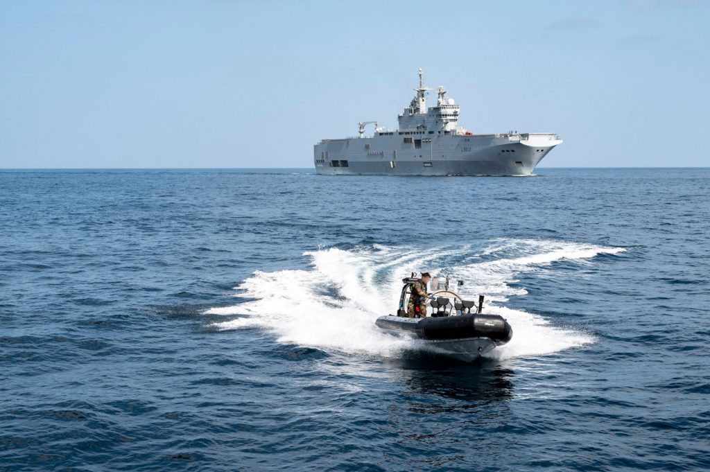 C’est Le QUOTIDIEN qui nous signale le Tweet de la Marine nationale , « le PHA ( Porte-hélicoptères amphibie) Mistral et la FLF (Frégate) Courbet ont identifié un boutre par hélicoptère avant de l’intercepter et de le fouiller. » Ces deux bâtiments sont engagés dans la lutte contre la piraterie et la criminalité dans l’Océan Indien.