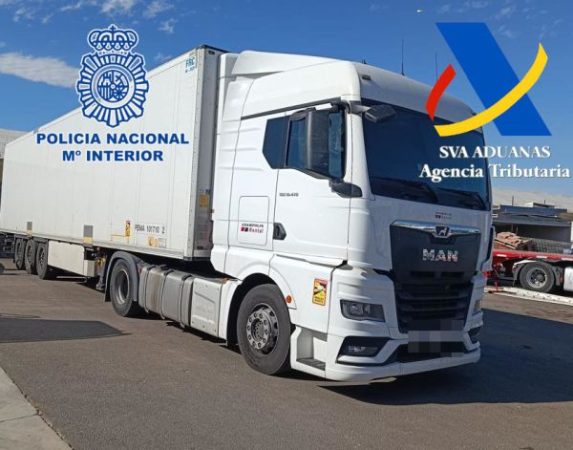 Agentes del Servicio de Vigilancia Aduanera de la Agencia Tributaria y agentes de la Policía Nacional en Almería, en una operación conjunta, han interceptado un alijo de 206 kilos de hachís, y 150 kilos de cogollos de marihuana, todos ellos envasados al vacío y oculto entre la carga de un remolque frigorífico, y un han detenido al conductor del camión, un varón de 35 años de edad y origen bielorruso.
