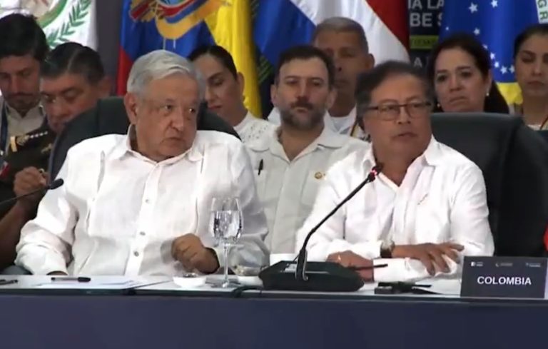 Dans son discours de clĂŽture aux cĂŽtĂ©s de LĂłpez Obrador, Petro a rappelĂ© sa vision de l’histoire.