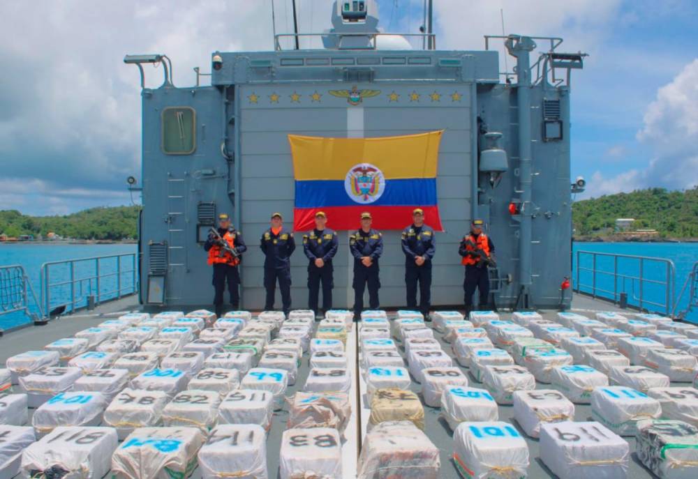C’est grĂące Ă des informations prĂ©cises que cette saisie a Ă©tĂ© rĂ©alisĂ©e avec le concours des patrouilleurs maritimes de l’aviation navale de la Marine colombienne, des avions de type Horus de la Force aĂ©rospatiale colombienne, de la frĂ©gate lance-missiles ARC « Caldas » (Photo ci-dessous) et d’unitĂ©s de rĂ©action rapide de la Station de la Garde cĂŽtiĂšre de Saint AndrĂ© sur ce bateau qui naviguait dans la mer des CaraĂŻbes.