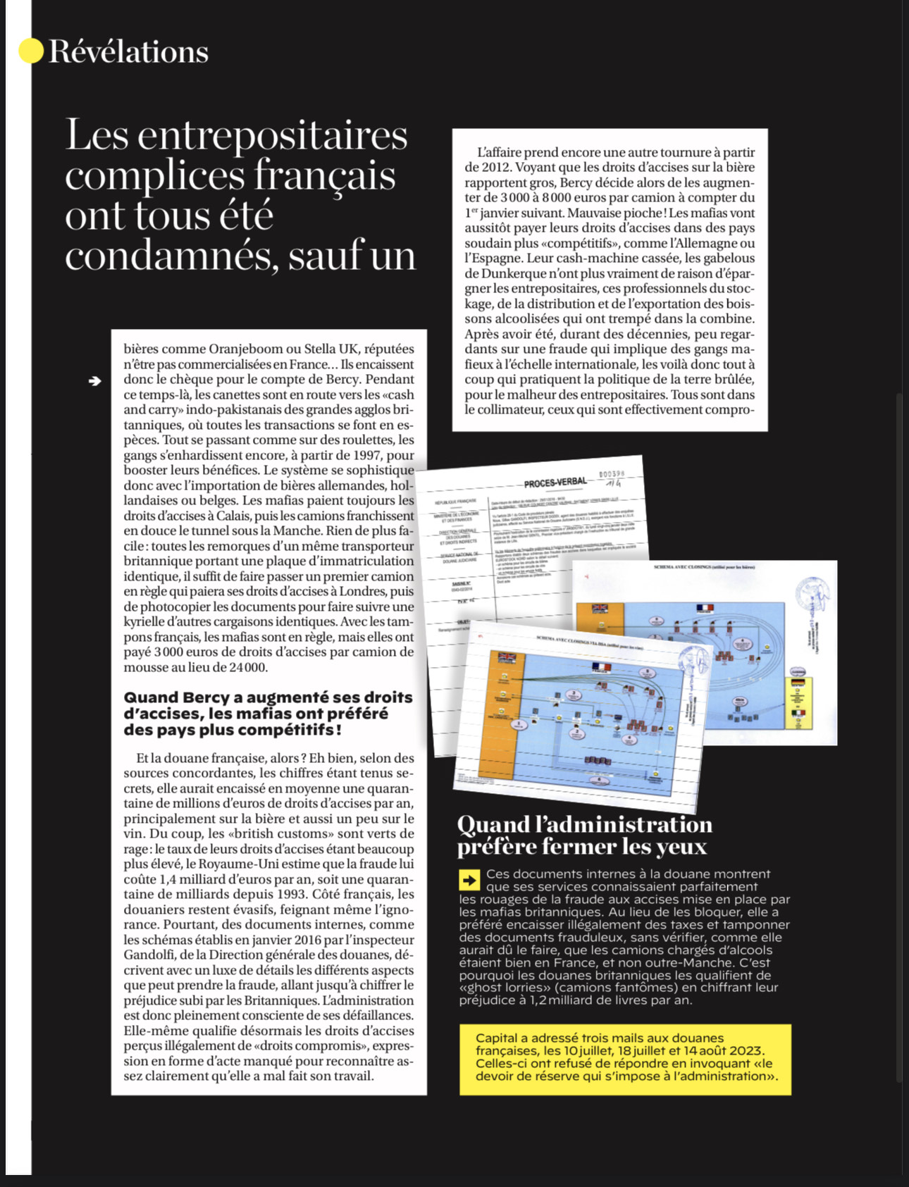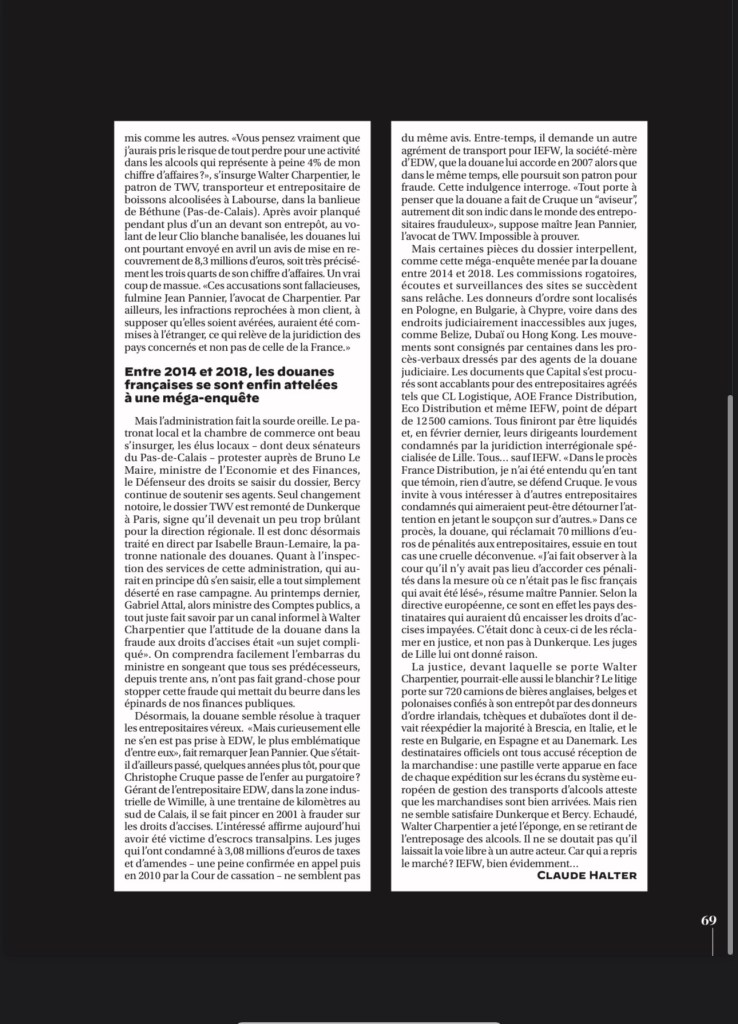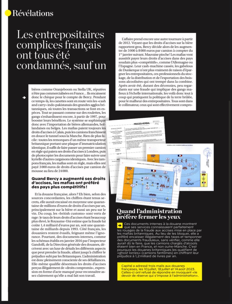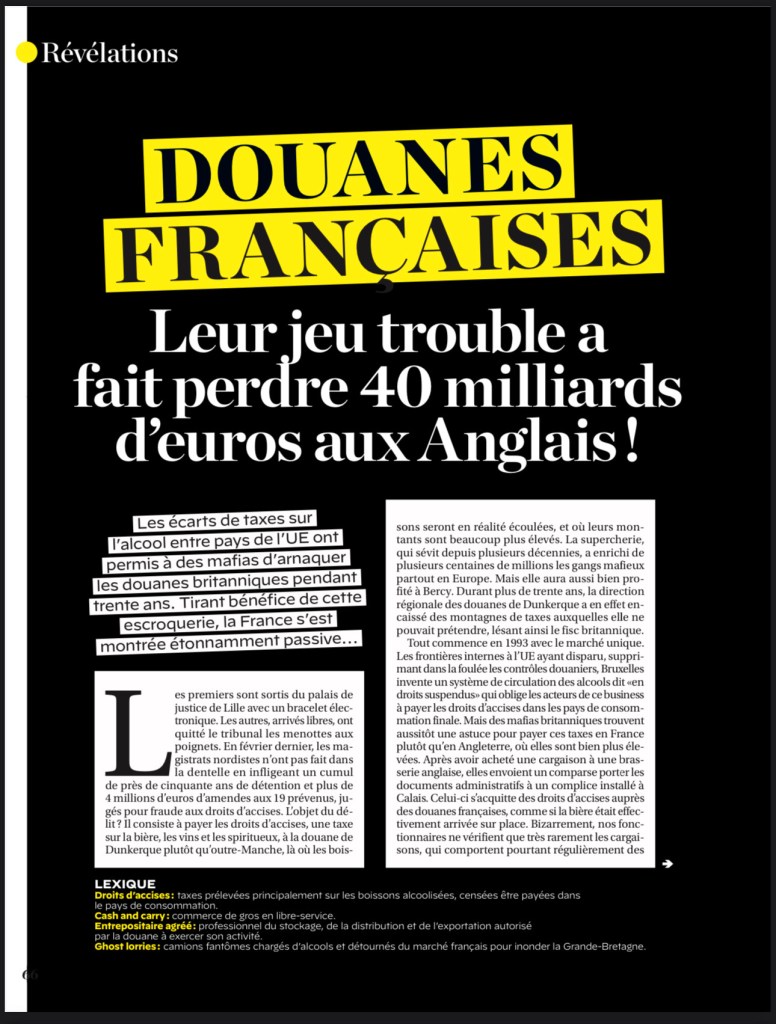 C’est dans CAPITAL de novembre 2023 que nous apprenons que durant plus de trente ans, la direction régionale des douanes de Dunkerque a en effet encaissé des montagnes de taxes auxquelles elle ne pouvait prétendre, lésant ainsi le fisc britannique.