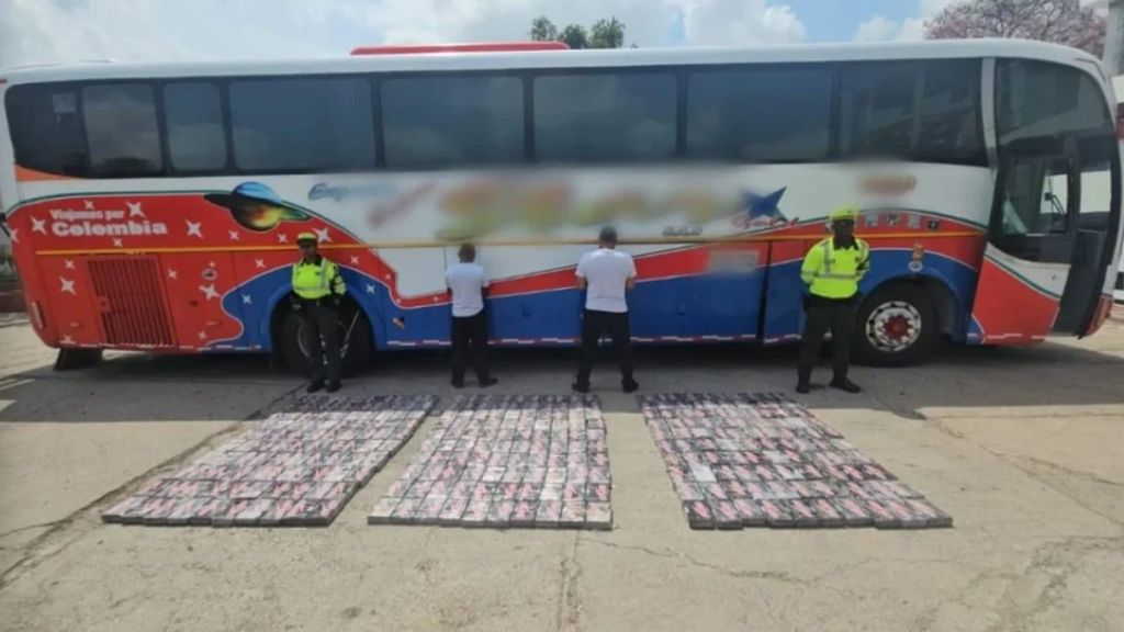 La Policía de Tránsito dio a conocer la incautación de 300 kilos de cocaína que estaban ocultos en los compartimientos de un bus que cubría la ruta Barranquilla-Maicao. Los hechos se registraron sobre la vía que conecta el corregimiento de Palomino con el distrito de Riohacha, en una zona rural de Dibulla, La Guajira.