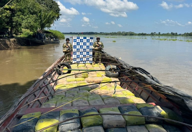 Le 17e Bataillon fluvial d’infanterie de marine de la Force navale des Caraïbes de la Marine colombienne a saisi 600 gallons d’essence (plus de 2 000 litres) et 35 tonnes de ciment, qui étaient transportés de manière irrégulière dans la zone générale de Regidor et Pinillos, dans le département. de Bolivar.