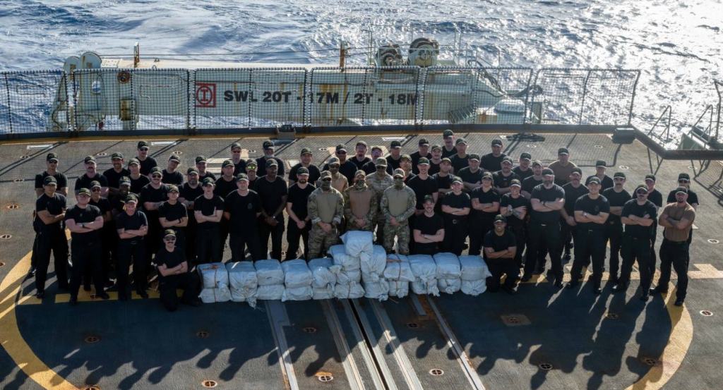 The Groningen’s embarked U.S. Coast Guard boarding team chased down the boat and captured 6,200 pounds of cocaine, plus five smugglers. 12 days later, Groningen hunted down another suspicious vessel off Venezuela and recovered about 570 pounds of cocaine from the water (though the suspects got away).