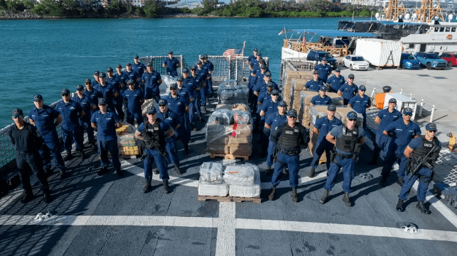 The seizures resulted from six interdictions in the Caribbean last month, carried out by Coast Guard units with assistance from Dutch and Canadian partners. The first and biggest occurred February 2 off the coast of Venezuela, when a Dutch Caribbean Coast Guard aircrew spotted a smuggling boat and vectored in the Netherlands Royal Navy patrol ship HNLMS Groningen to intercept.