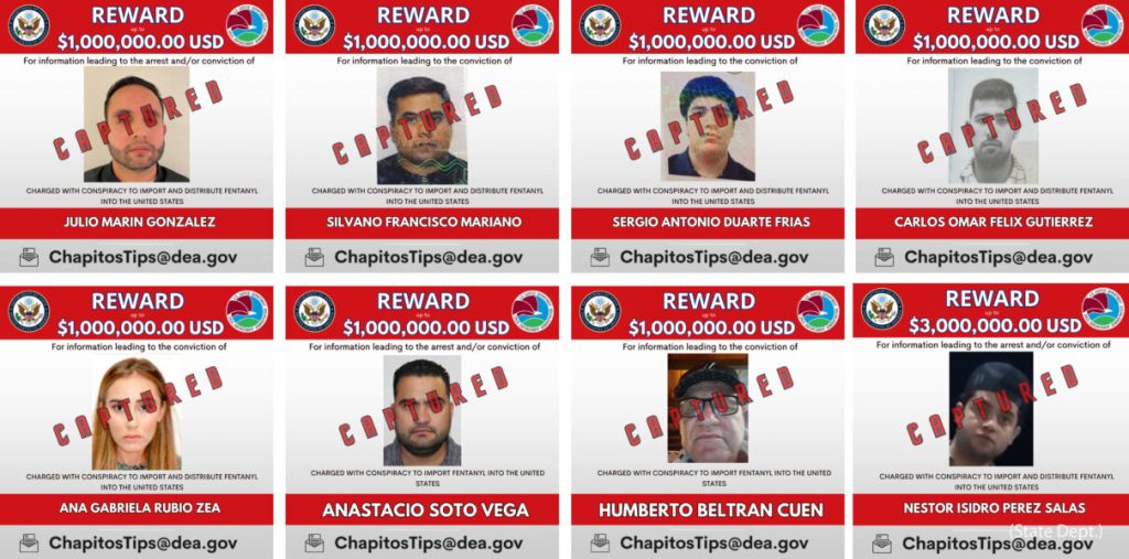 Ces individus vendaient du fentanyl au kilo, échangeaient de la drogue contre des armes automatiques, exploitaient des laboratoires clandestins et organisaient la livraison de précurseurs chimiques ou blanchissaient de l’argent, est-il détaillé dans les chefs d’accusation. Ils font partie des 27 personnes impliquées dans le trafic de fentanyl et faisant l’objet d’une demande d’informations de nature à conduire à une condamnation, conformément au programme de récompenses du département d’État lié à la répression du trafic de stupéfiants.