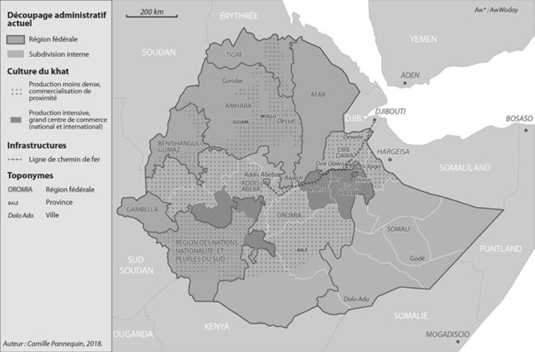Si le khat suit des chemins qui l’emportent au loin, rappelons toutefois que la première destination d’exportation des feuilles cultivées dans l’est éthiopien est le Somaliland, où 60 000 kilos sont exportés quotidiennement en toute légalité.