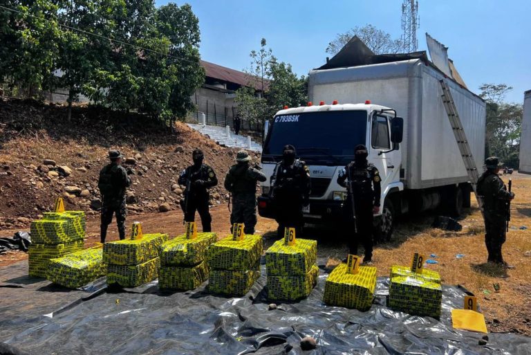 À l’intérieur, 35 colis qui ont été transférés dans une installation militaire pour les procédures de la police nationale civile et du ministère public.