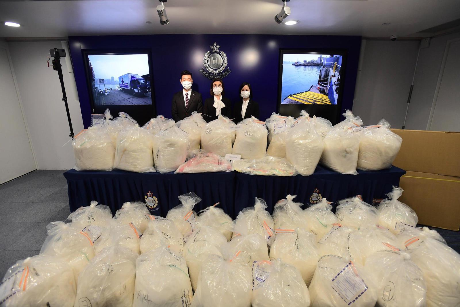 Vendredi matin, les autorités ont intercepté les stupéfiants alors qu’ils étaient déchargés d’un bateau hors-bord dans le quartier balnéaire de Lei Yue Mun.