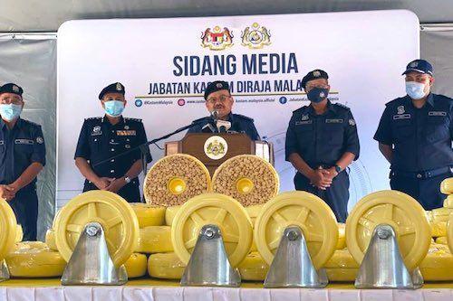 Abdul Latif Abdul Kadir, Directeur général des douanes a précisé : «Cette cargaison de drogues d’un poids de 16 tonnes a été trouvées cachée dans des pneus de chariot et était destinée à être expédiée vers un pays tiers d’Extrême-Orient ».
