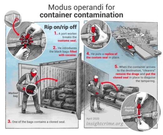 Cela a conduit à un changement vers la méthode de rip-off, où les trafiquants évitent le profilage en ouvrant les conteneurs d’exportations légitimes pour expédier les drogues, puis utilisent des scellés douaniers clonés pour dissimuler la falsification. Au départ, le rip-off était pratiqué par les petits trafiquants qui envoyaient des dizaines de kilogrammes. Mais à mesure que cette méthode gagnait en popularité, les expéditions ont augmenté en taille, les transports de plusieurs tonnes étant désormais monnaie courante.
