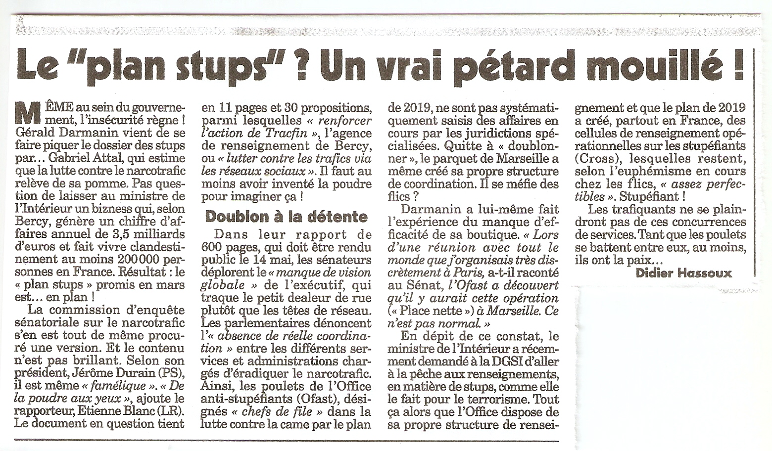 Hier Gérald Darmanin, le ministre de l’Intérieur, a fait un article 40 au procureur de Paris contre les vidéos du péage d’Incarville qui ont fuité », a précisé son entourage…