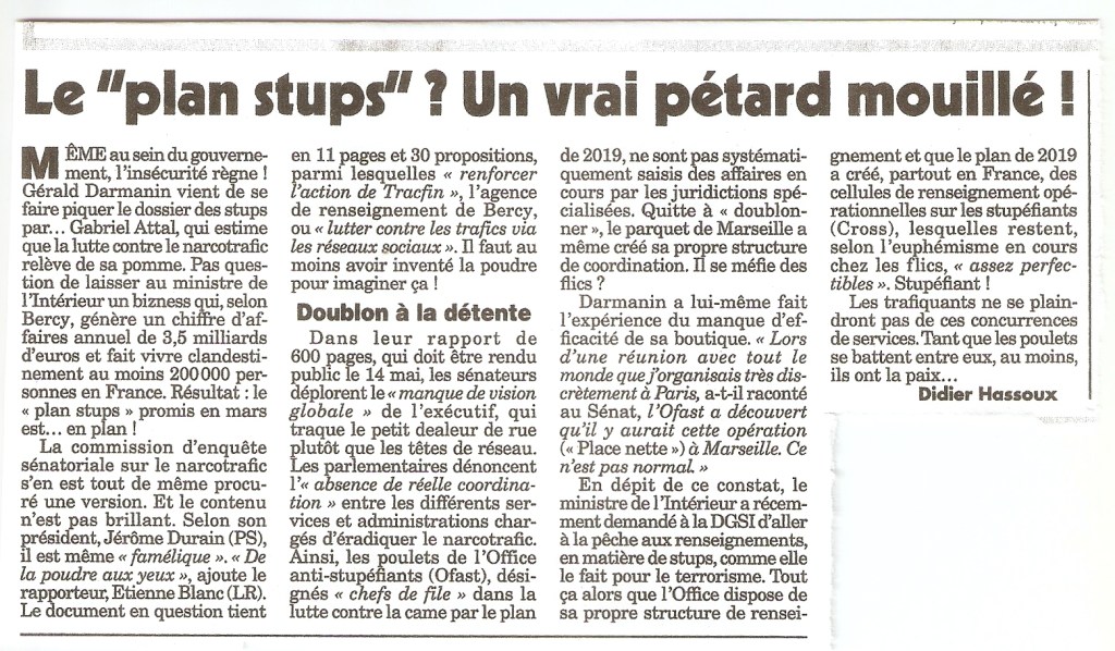 Spécialistes des « annonces », EDM comme Gérald Darmanin sont prêts à tout pour exister mediatiquement, et l’exemple des opérations XXL n’ont réussi qu’à mobiliser un nombre très important de policiers et gendarmes au détriment de la sécurité générale, en est un des derniers exemples.