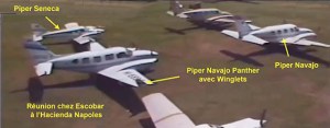 Selon Jacobsen, le but était de piéger le Cartel, et de remonter jusqu’aux principaux commanditaires dans « la plus importante enquête de l’histoire de la DEA« , selon lui, ce qui aurait pu marcher s’il n’y avait pas eu un grain de sable venu tout mettre par terre appelé Oliver North… Seal est abattu juste au moment ou North a révélé le pot aux roses, la seule façon pour lui de s’en sortie en fait, pour lui, mais condamnant irrémédiablement Seal. « Dans son témoignage, Jacobsen a déclaré que Seal avait révélé à la DEA qu’entre 1984 et 1986, le Cartel de Medellín avait au Yucatan un ranch de 40 000 acres (16 184 hectares, mais le document ne précise pas l’emplacement), pour stocker la cocaïne colombienne. et la transmettre aux États-Unis dans de petits avions. Ces engins pouvaient transporter de quatre à cinq cents paquets de drogue chacun ». (ici une réunion dans le ranch d’Escobar montre un éventail de ces petits appareils).