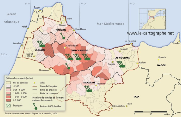 Produites au Sud, les drogues sont consommées au Nord. Ni la France, ni la Belgique, ni les Pays-Bas ne sont en capacité de stopper leur arrivée. Le cannabis provient avant tout du Maroc, qui est l’un des principaux producteurs de résine de cannabis au monde. Cette production est un facteur de stabilité sociale dans la région du Rif, traditionnellement rebelle, très pauvre, où le cannabis fait vivre des centaines de milliers de personnes.