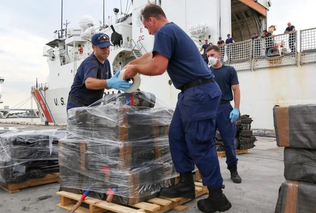 Les 26 250 livres de cocaïne et 3 700 livres de marijuana ont été déchargées du navire des garde-côtes « Hamilton », et à la suite de huit saisies effectuées en 70 jours environ. à Port Everglades, à Fort Lauderdale, au nord de Miami, à la suite de huit saisies effectuées en 70 jours environ.