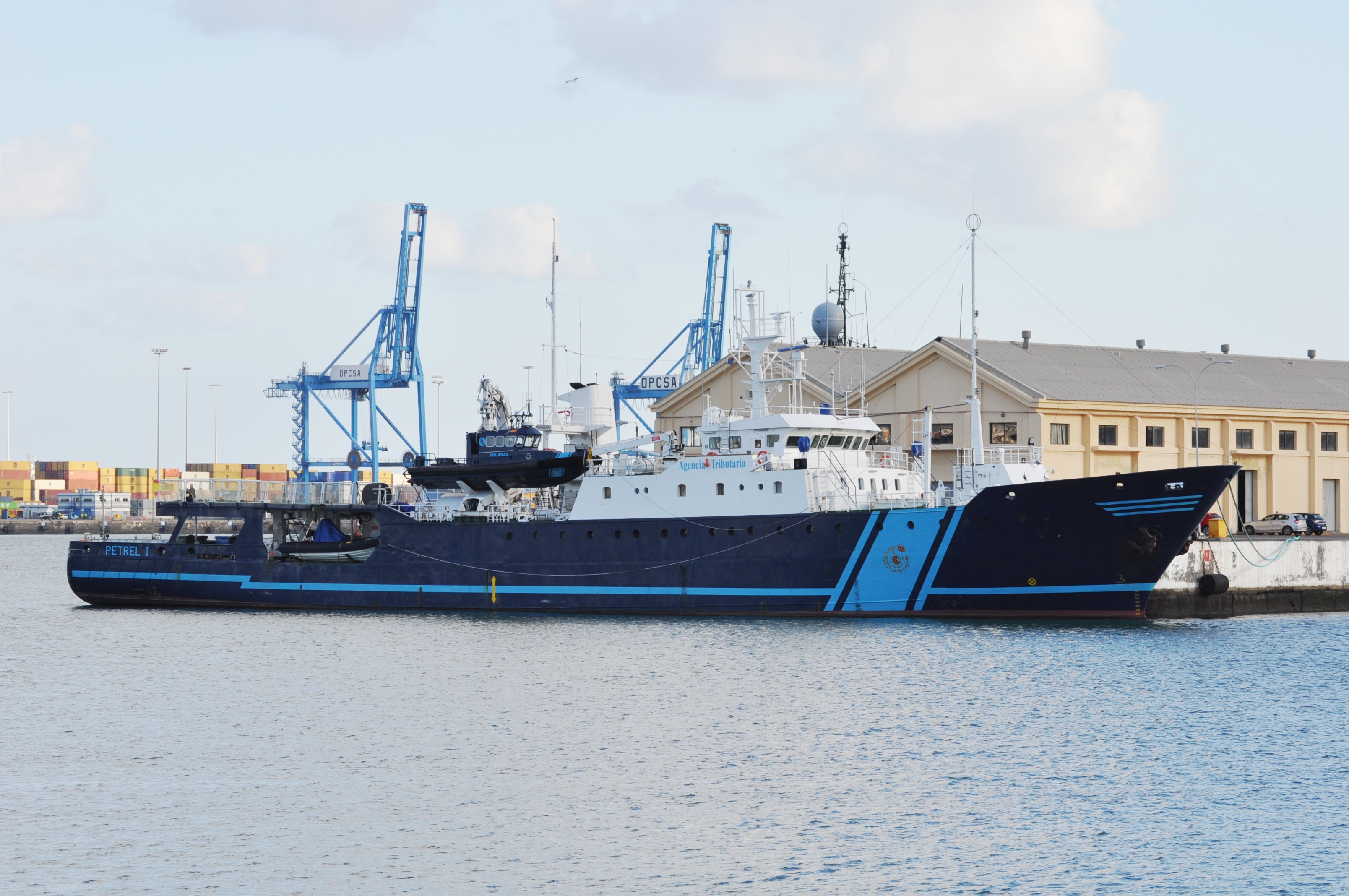 Dans le cadre d’une opération avec la ‘Policia’ et la ‘Guardia civil’, les marins-douaniers du PETREL ont intercepté un bateau à cabine semi-rigide, dénommé « SRC 1250 », à 400 milles des Îles Canaries, d’une longueur de 12,5 mètres. A bord, une cargaison de coke répartie en 86 balles, soit environ 2500 kilos selon les premières estimations.
