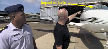 Dans cet épisode, on peut en effet le voir tourner autour d’un King Air C90 dans le hangar bélizien des saisies, il y montre même du doigt un trou laissé par une balle dans le pare-brise du King Air. Mais hélas, l’immatriculation de ce de dernier a été occultée par les autorités… Si l’émission ne donne pas l’endroit où a été confisqué cet appareil, ni son pedigree, nous on le sait ; c’est notre fameux « YV678 » (une fausse appellation) de la Northern Highway; arrivé le 7 mars 2008 !!! Des retrouvailles, en quelque sorte ! Le reportage est en effet de la même date,et à l’époque c’était donc du tout frais au moment des prises de vues !