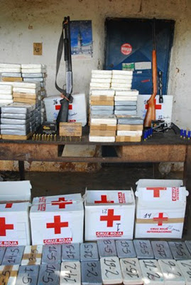 Episode supplémentaire à l’histoire : Francisco Larrazabal, mort, sa propriété de 400 hectares avait vite attiré les convoitises… dont celle de Walid Makled. Boulton viendra au tribunal raconter en 2012 que « Makled était intéressé par la propriété car ses avions pouvaient y atterrir« , et c’est pour cela qu’il était devenu propriétaire des terrains en 2006 « sans jamais avoir vraiment effectué tous les versements » qu’il aurait dû faire. Il en a avait assumé deux seulement, et encore « pour un faible pourcentage de la somme due« . « Selon l’accusation, la drogue apportée par avion sur la dite piste, et de était transportée à la maison don Makled était propriétaire, à travers un chemin qui, selon plusieurs témoins, se connectait directement à la ferme El Rosario . » Un employé des Haras avait confirmé la venue et le débarquement de « boîtes blanches, transportées par camionnette à l’hacienda de Makled ».makled_aircraft-673cf « Un des travailleurs Haras San Francisco, qui a refusé d’être identifié par crainte, dit que son patron a été tué pour avoir parlé. Pour cette raison, il craint d’être la prochaine. Cinq écuries avec plus de 500 chevaux, trois hangars, un théâtre et des animaux de laboratoire en ville et l’exploitation de deux gorilles, trois zèbres, des autruches, des deux un chameau et un hippopotame, tous les biens du Safari Valencia étaient les actifs les plus précieux de Larrazabal » peut-on lire. Les animaux ont vite disparu, et et la ferme a périclité ensuite. Boulton, retenu par un le mercenaire d’extrême droite avec lequel Chavez discutait pourtant, était venu ce jour là charger Makled au possible. cartons_crix_rouge-8821fPour ajouter à cela, l’l’Institut National des Terres avait exproprié une partie des terrains de Larrazabal, pour en faire des terres constructibles et y installer des habitations, un projet qu’avait accepté le vétérinaire la veille de son décès. Depuis, d’autres bâtiments avaient gagné du terrain sur les 400 hectares de départ… à l’hacienda (finca) de Makled, on trouvera effectivement un petit avion, plutôt de type ULM. La piste bitumée de la propriété avait pourtant 950 m de long… la drogue était effectivement dissimulée dans des boîtes blanches… portant le signe de la Croix Rouge !